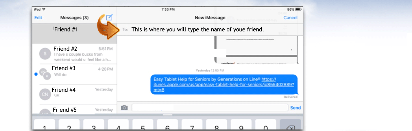 This is where you would type in the phone number of the person you want to text